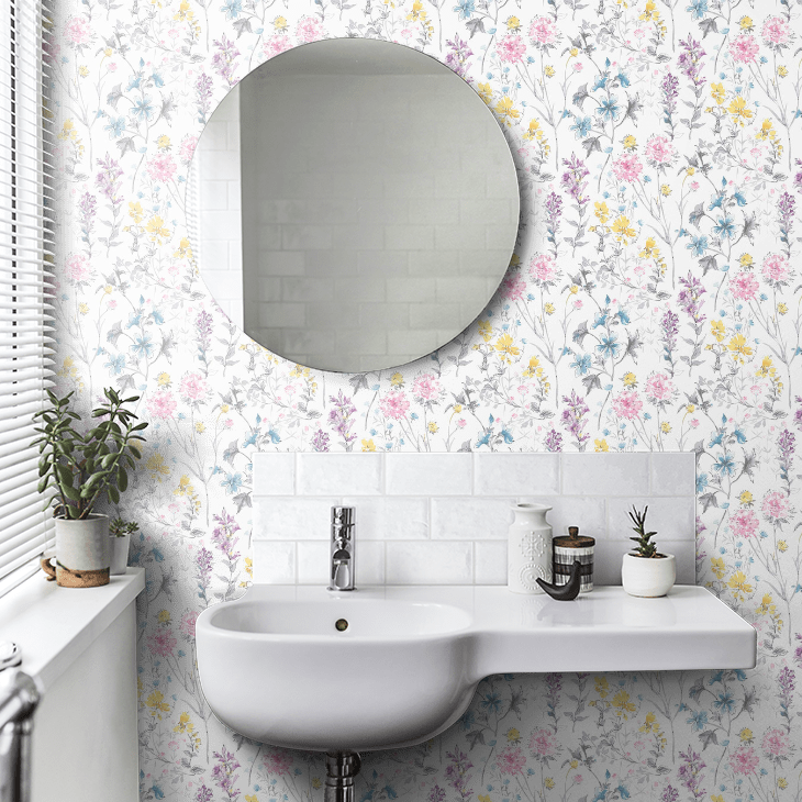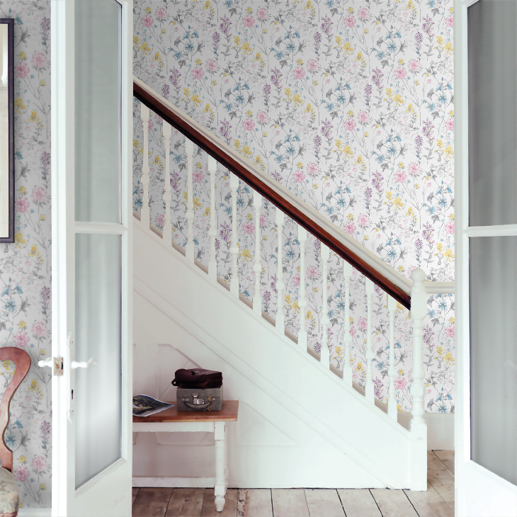 英国のさまざまな野生の花を水彩で描いた豪華なイラストが特徴の壁紙です。