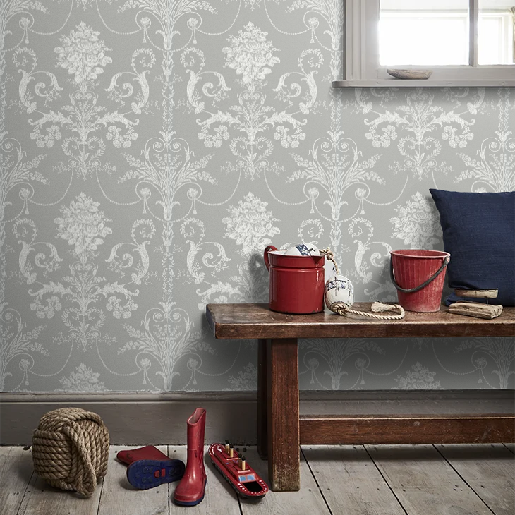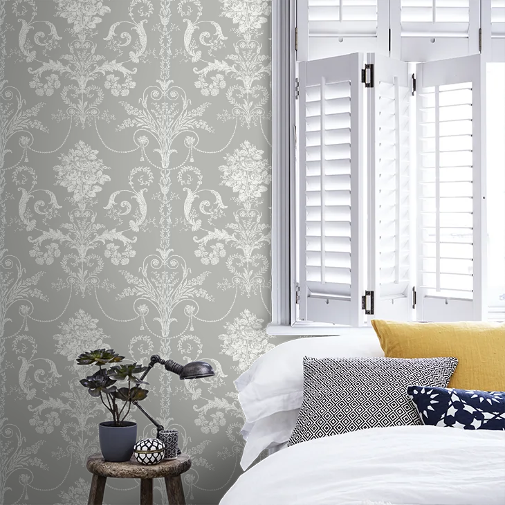 壁紙 ローラアシュレイ 113383 Josette ジョゼッテ Steel グレー ダマスク