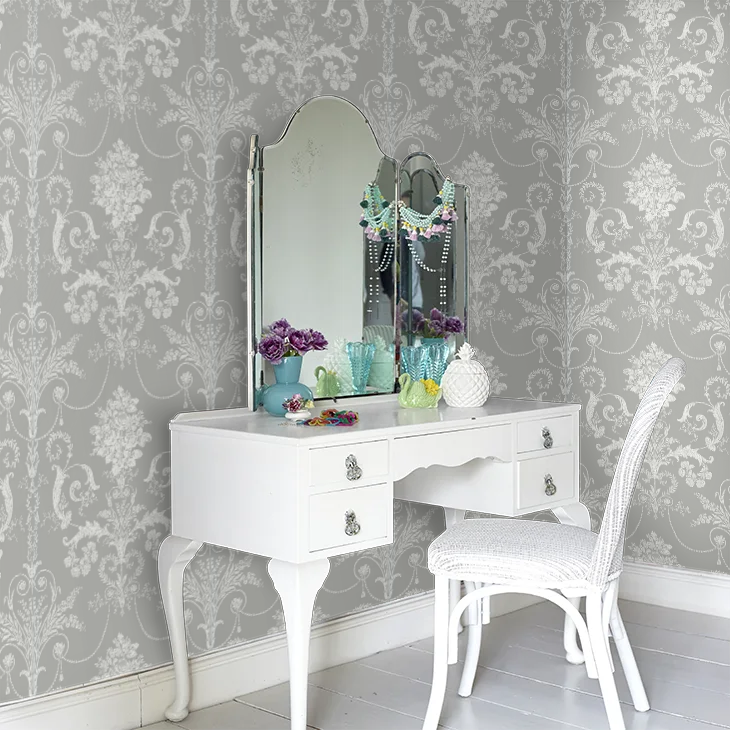 華やかでエレガントなシャビーシックスタイルのダマスク柄。