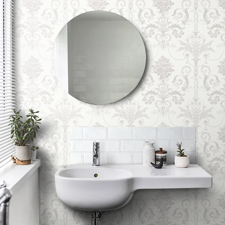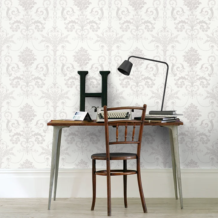 壁紙 ローラアシュレイ 113385 Josette ジョゼッテ Dove Grey / White グレー/ホワイト ダマスク