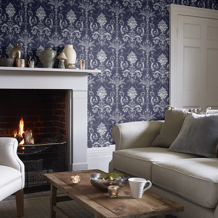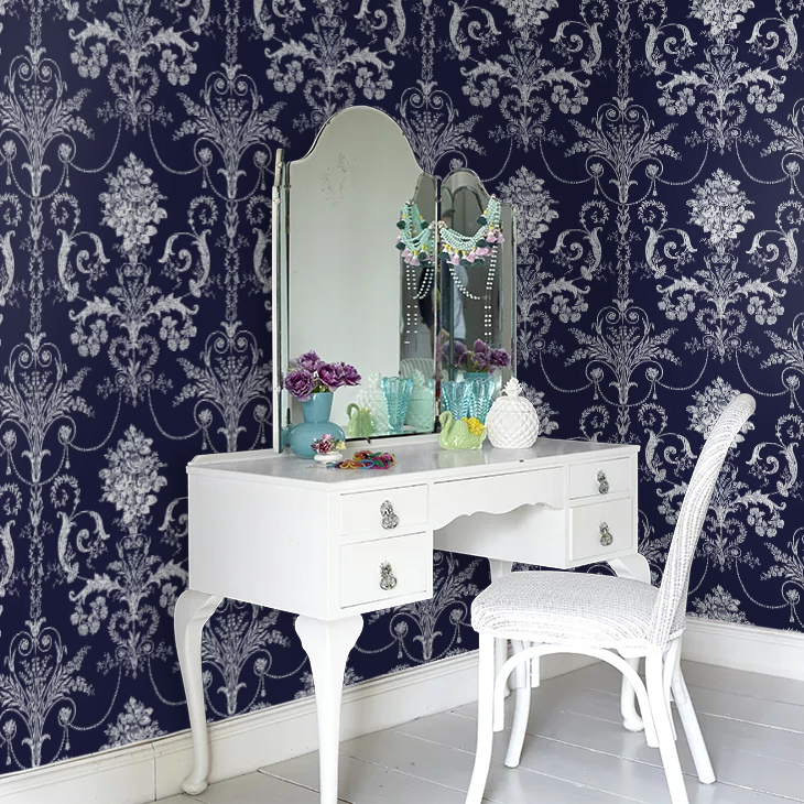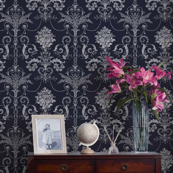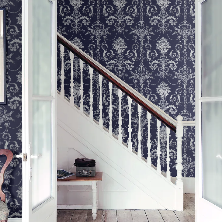 壁紙 ローラアシュレイ 113386 Josette ジョゼッテ Midnight ミッドナイト ダマスク