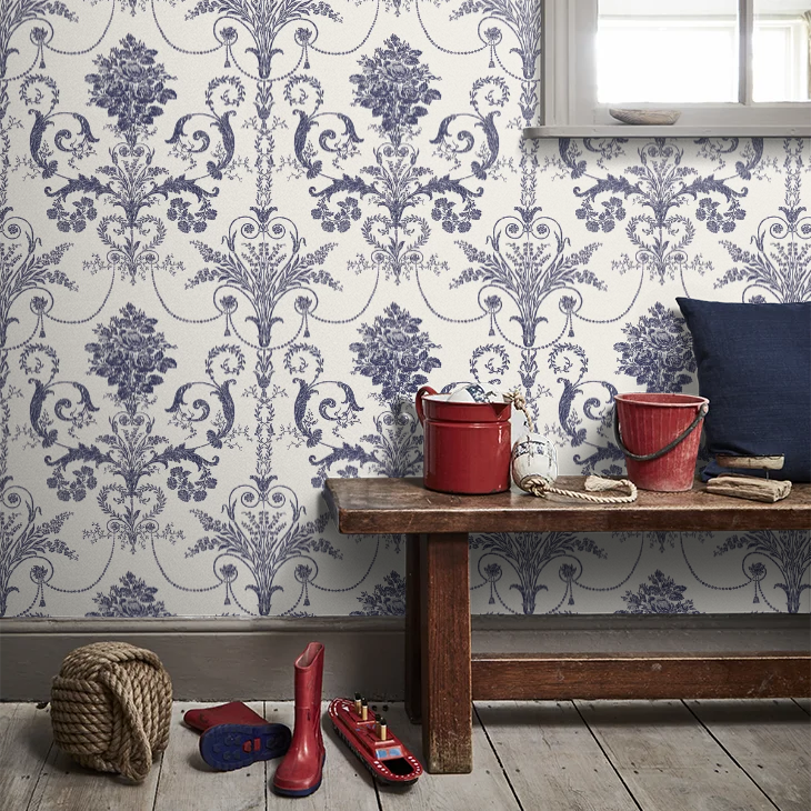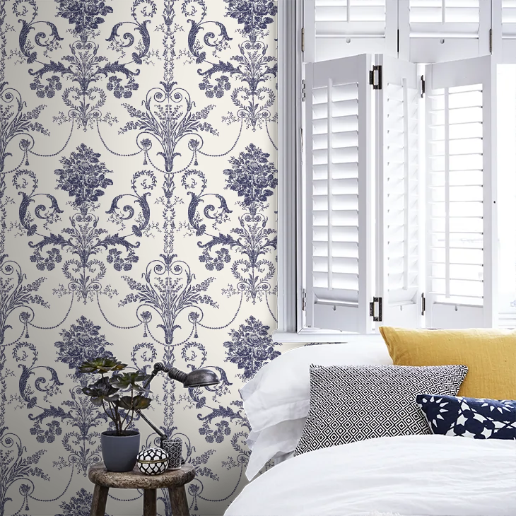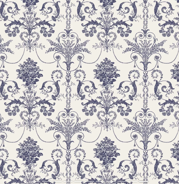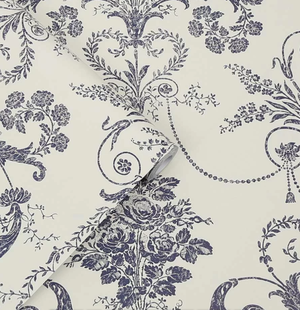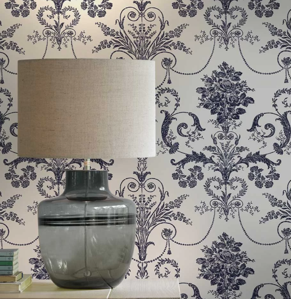 壁紙 ローラアシュレイ 113387 Josette Off White / Midnight オフホワイト/ミッドナイト ダマスク
