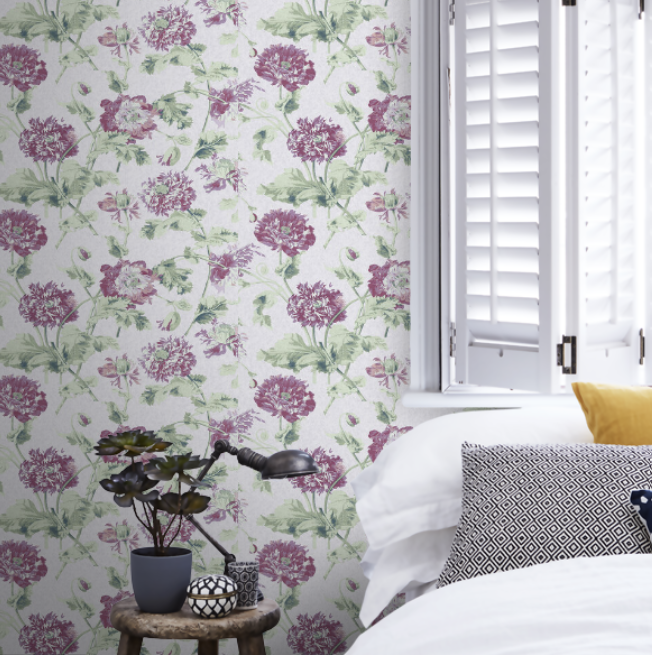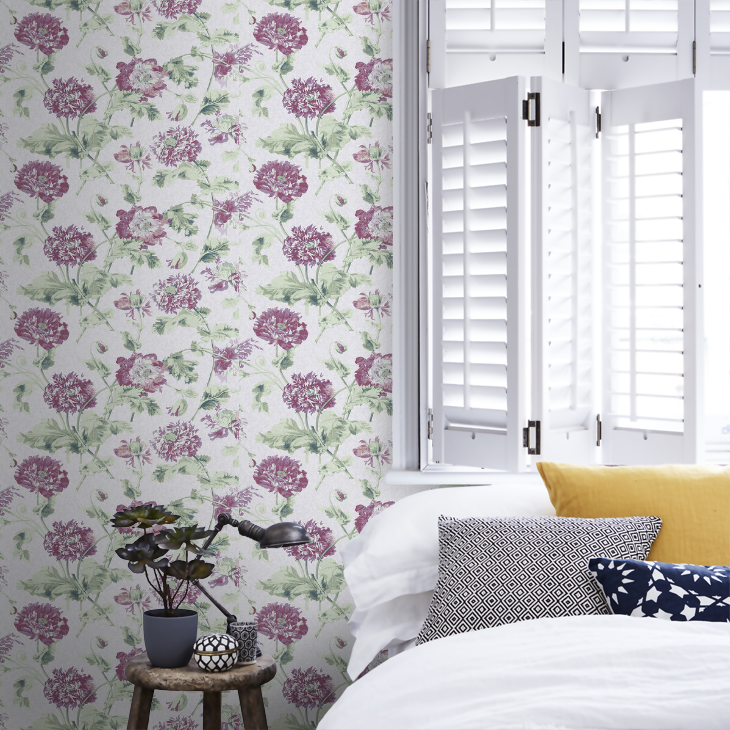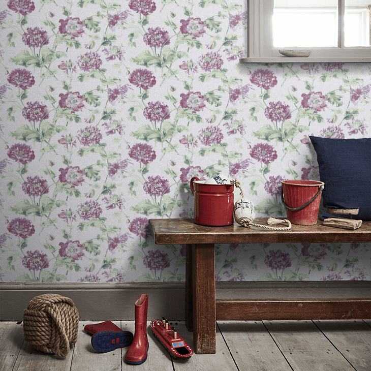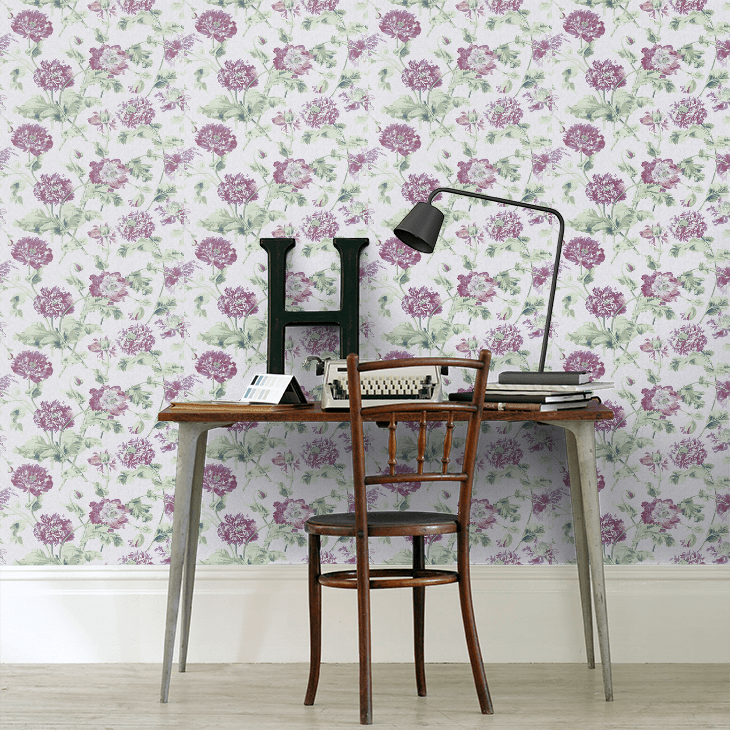 Hepworth(ヘップワース)は、ローラ アシュレイが収集している絵画やアンティークの生地や壁紙などのアーカイブコレクションからインスピレーションを受けて考案された菊の花のプリント。