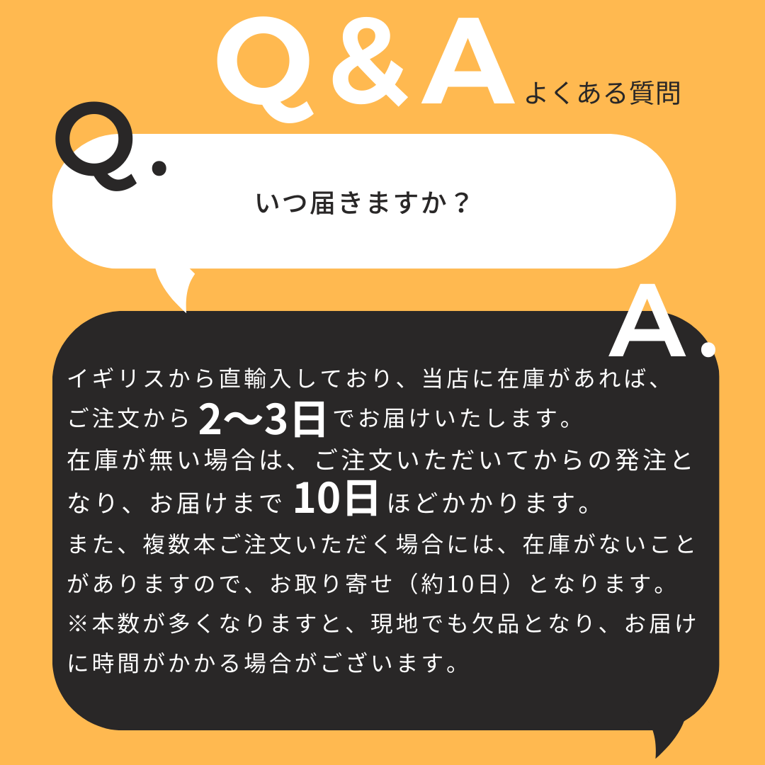※本数が多くなりますと、現地でも欠品となり、お届けに時間がかかる場合がございます。