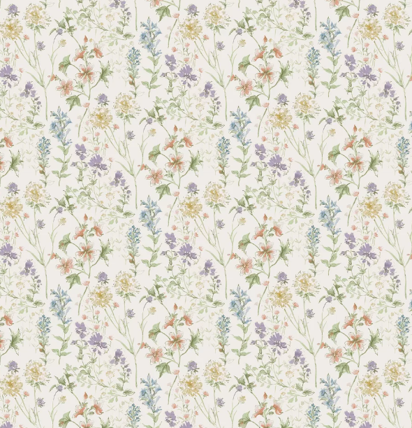 全体に繊細な草原の花が描かれた可愛らしい模様。